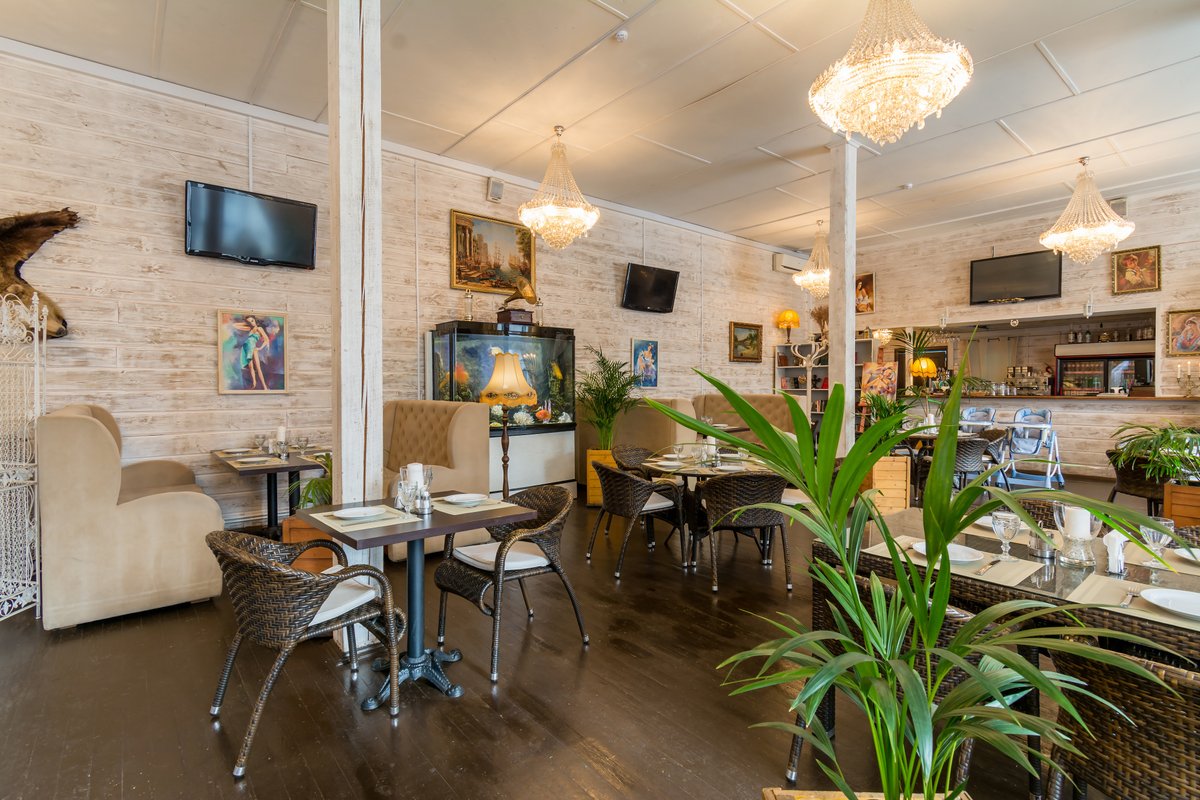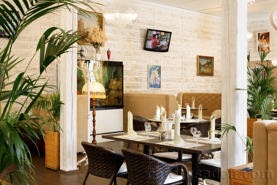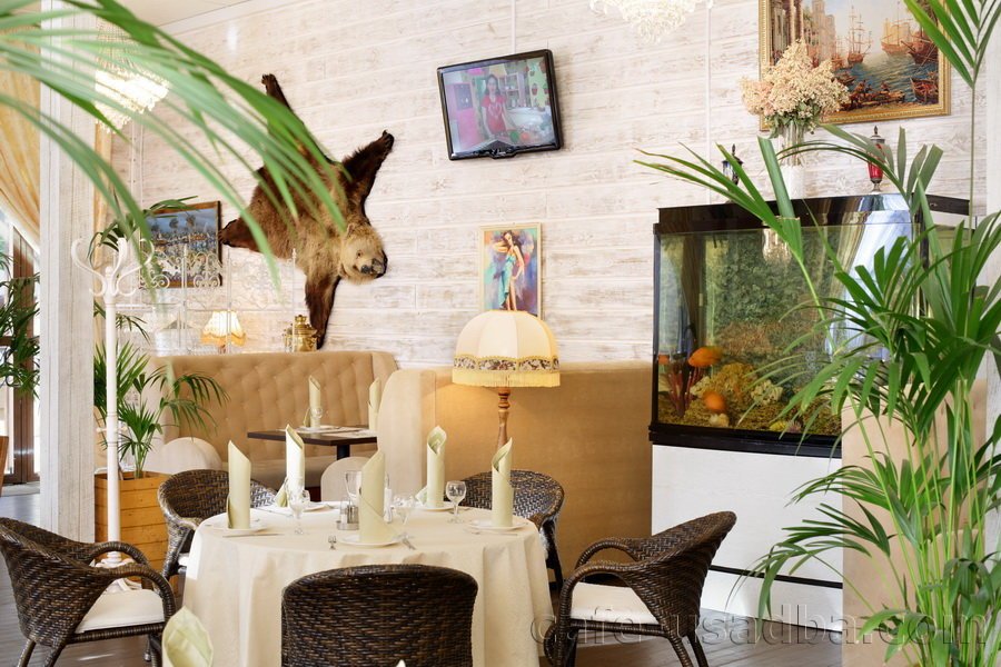 В данное кафе чаще всего я хожу по праздника. Мне особенно нравится кухня в заведении. Все блюда, которые я пробовала мне понравились, могу выделить мясо, телятина очень вкусная. Меню хорошее, но мне не хватило салатов с морепродуктами. Можно добавит именно рыбных блюд. Обслуживание в ресторане очень хорошее, приятное. Официанты работают быстро, откликаются на все просьбы, подходят. В кафе уютно. Прикольно, что есть аквариум, детям он нравится. Кафе находится близко и оно актуальное.