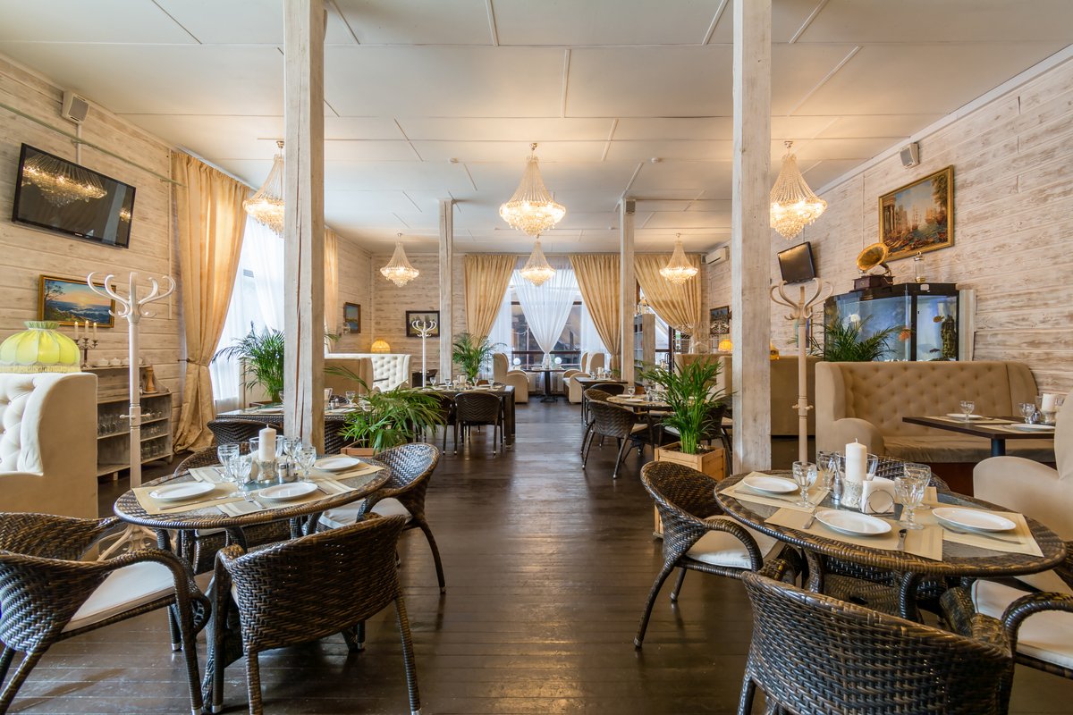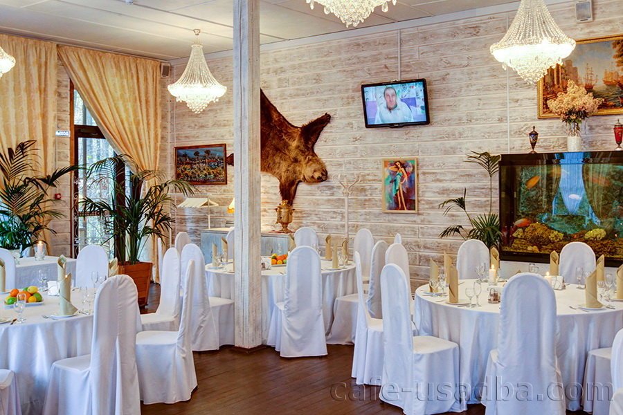 Праздновали свадьбу на 30 человек 19 августа. Мероприятие прошло отлично, еда была вкусной и красиво оформленной, официанты шустрыми. Меню согласовывали в экселе с управляющим Игорем, он предложил свой вариант с учётом количества гостей и рассадки, мы отредактировали. Пробкового сбора нет, поэтому часть напитков привезли в ресторае сами накануне. Ресторан находится на берегу пруда в парке, место очень удачное. Крайне рекомендую в качестве выбора места для свадьбы.
